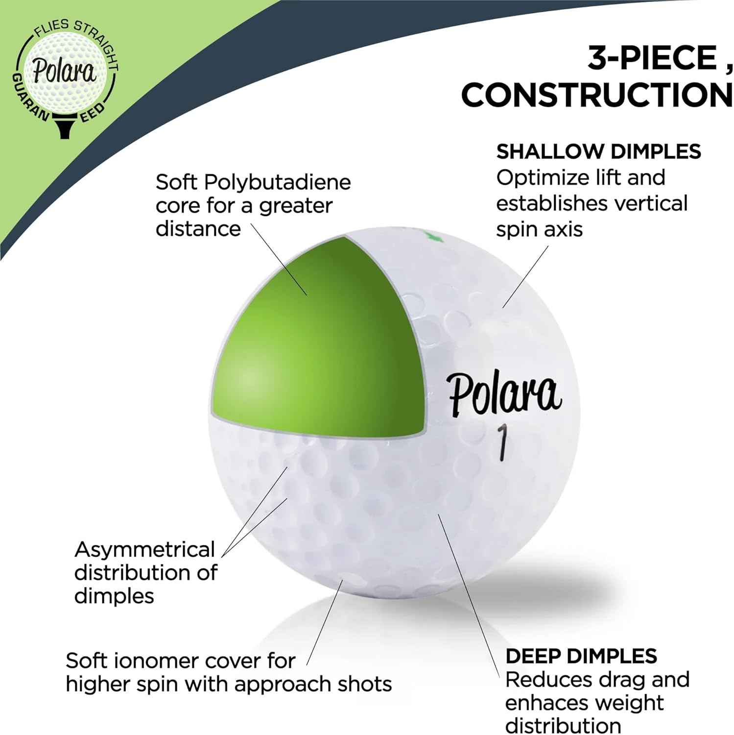 • **Unique Dimple Pattern:** Converts unwanted spin into straight-backspin for enhanced accuracy.